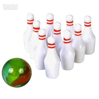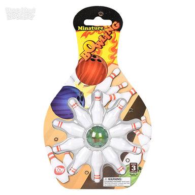 MINI BOWLING GAME Each set on blister card 1 dozen in poly bag Each set includes 10 pins and one ball Great for small prizes Sold by the dozen ...