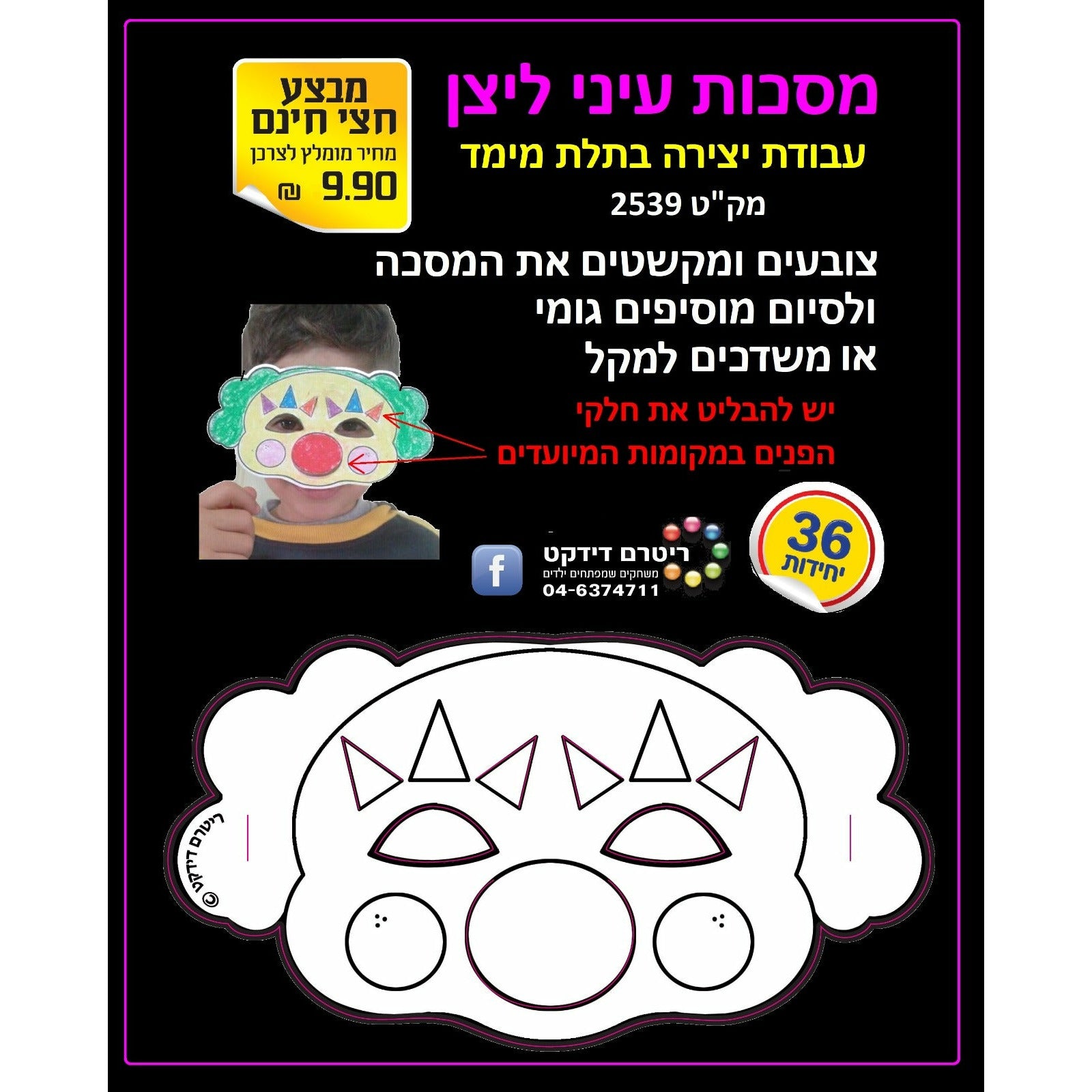Color-In Clown Eye Masks